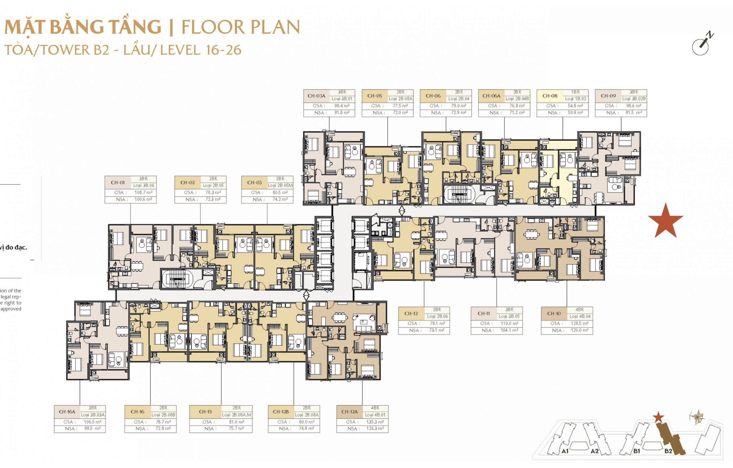 Mặt bằng Toà B2 – CT5 Masteri Park Place