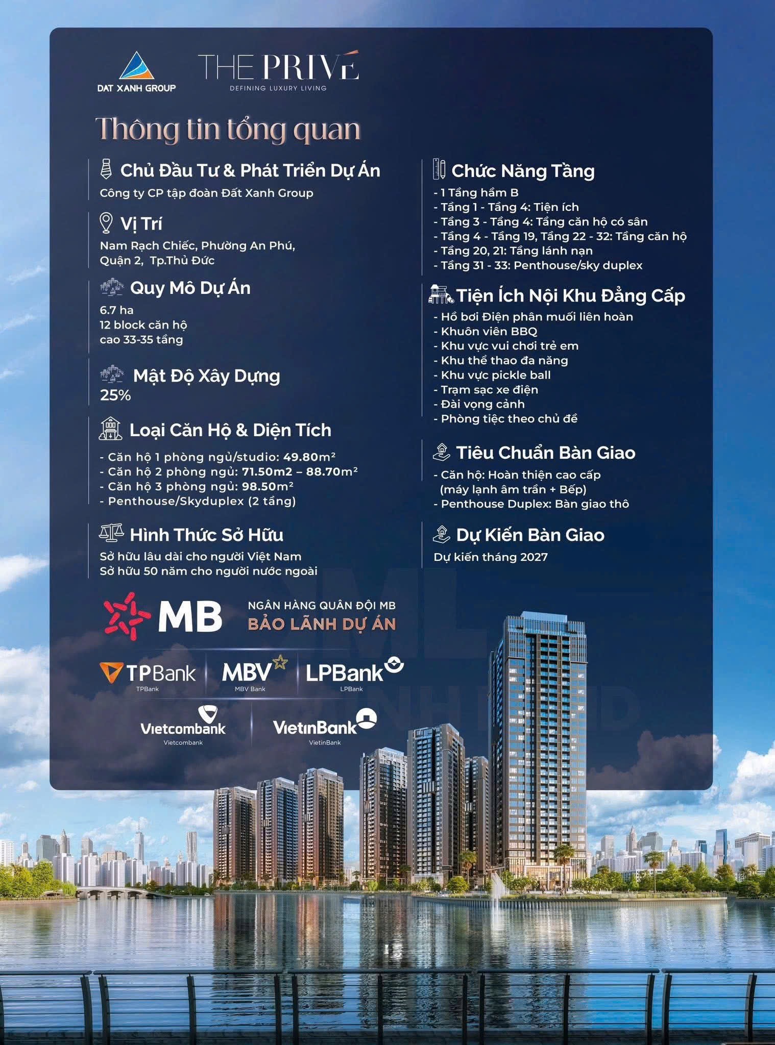 Dự án căn hộ The Privé của Tập đoàn Đất Xanh tọa lạc tại đường Song Hành, phường An Phú, TP. Thủ Đức (trước đây là Quận 2), TP. Hồ Chí Minh. Dự án được xây dựng trên quỹ đất rộng 6,7 Héc-ta, với quy mô 12 tòa tháp cao 33-34 tầng, cung cấp 3.175 căn hộ cao cấp ra thị trường.