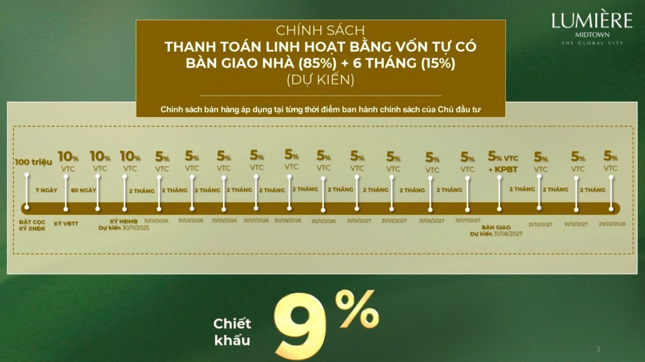 🔺 Thanh toán 85% đến khi nhận nhà, 6 tháng sau thanh toán 15% -> Chiết khấu 9%