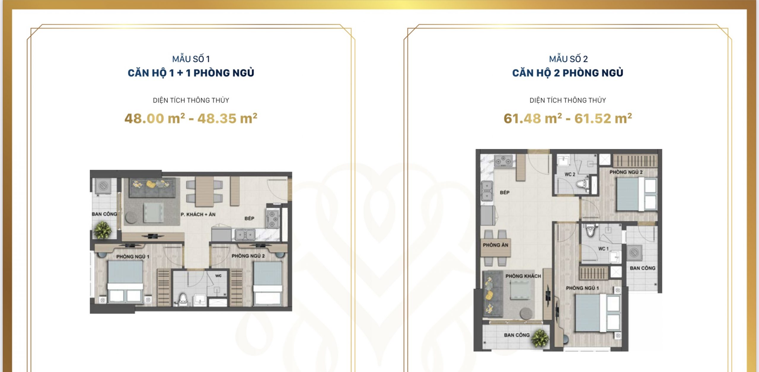 • 2 phòng ngủ – 2 WC