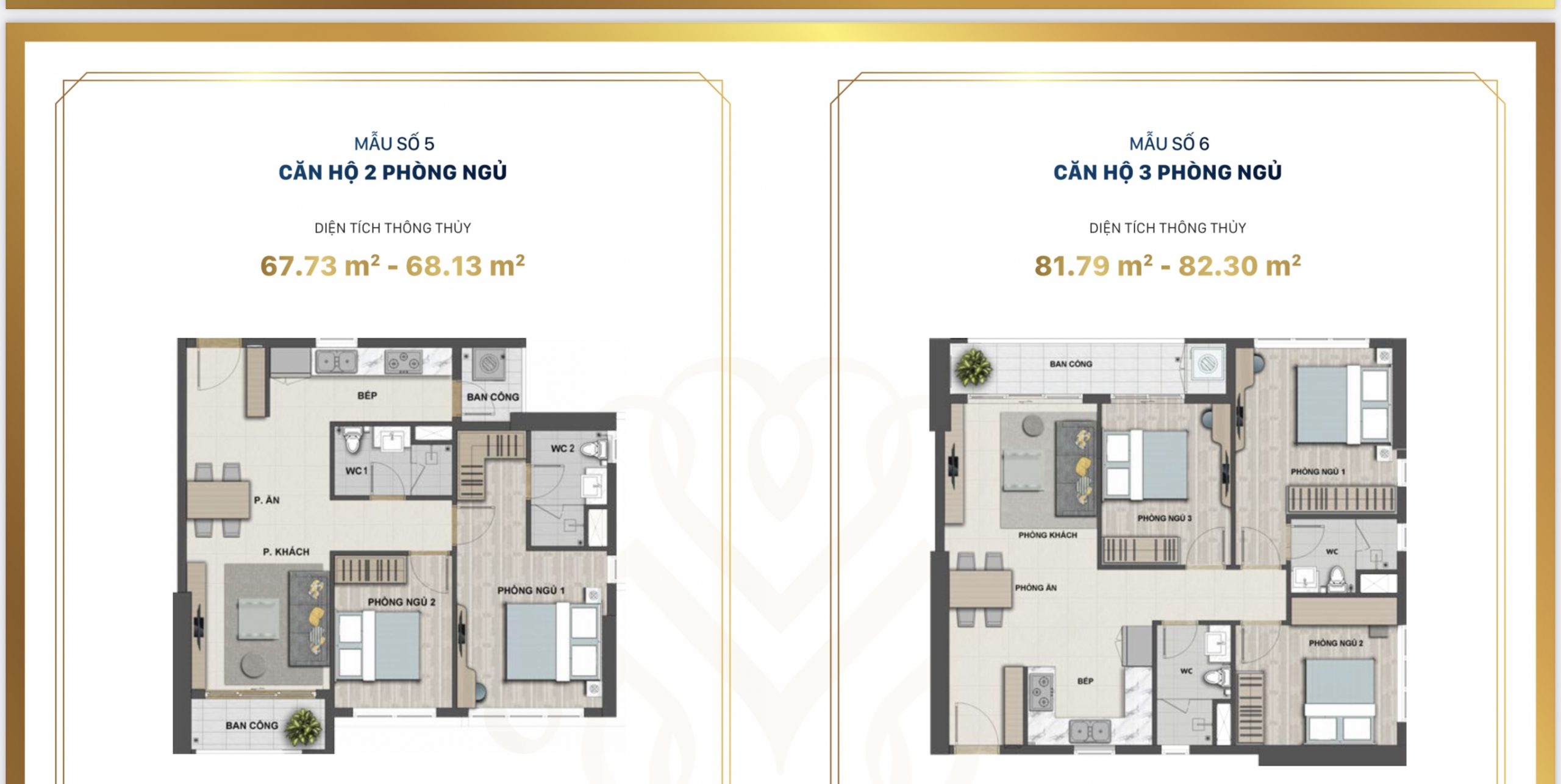 Căn 2 phòng ngủ – 63–67-82m²